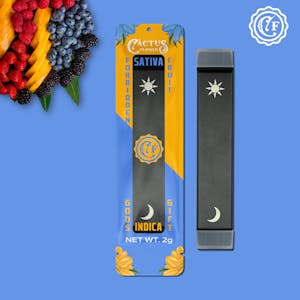- Disposable | SativaCactus FlowerForbidden Fruit/Gods Gift 2G Dual Vape99.99% THC3.81% CBD$25.00per 2 g